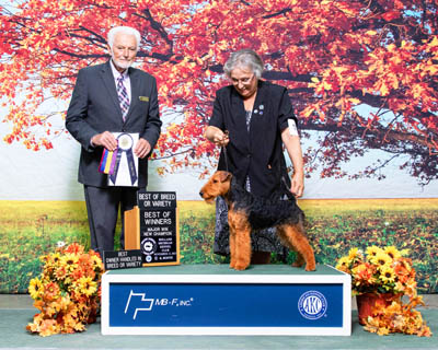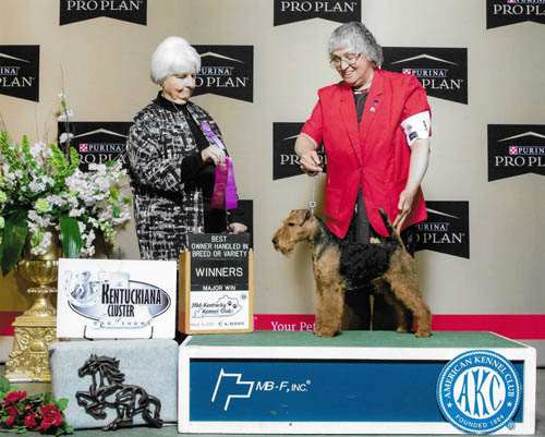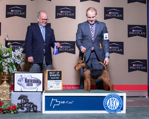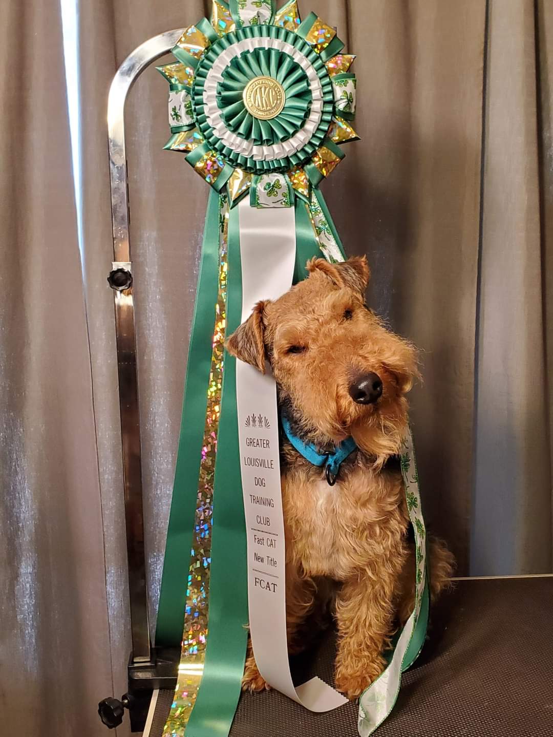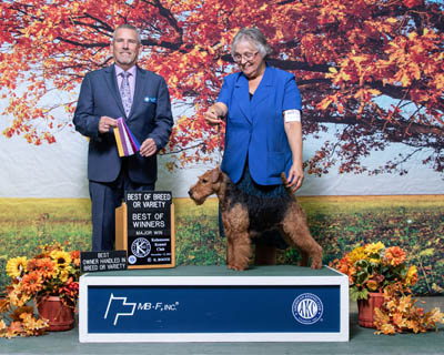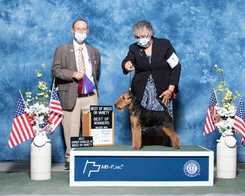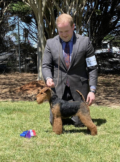 Happy to report that our new young boy Brynmawr Yo Ho Ho (Rum) was awarded a five point major at the WTCA Floating Specialty Weekend at Louisville. He was also awarded Best of Winners and Best Bred By Exhibition Welsh Terrier. He went on to win the Best Bred By Exhibitor Terrier Group. Beginning his career, this was only the second weekend for this young boy.